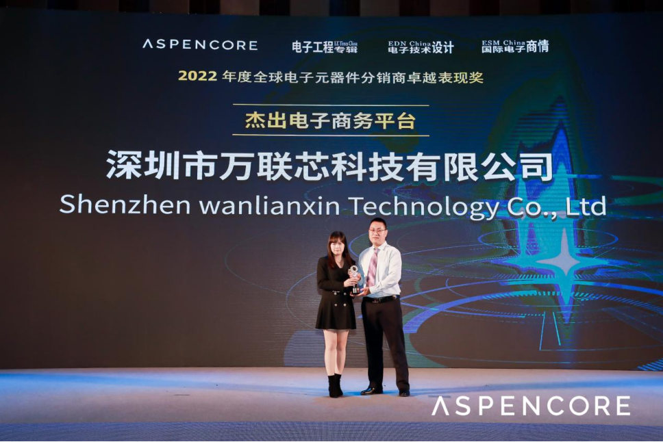 11月11日,深圳市万联芯科技有限公司(简称:万联芯城)凭借创新的“线上+线下一体化服务新模式”和本年度的卓越表现,再次获得AspenCore“2022年度全球电子元器件分销商卓越表现奖-杰出电子商务平台”!
