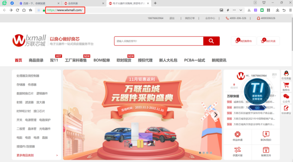 采购总监angela登台领奖 总经理颜俊奇先生合影留念(第一排、右五) 进入2022年以来,新冠病毒持续变异、欧洲局势风云动荡、欧洲遭遇能源危机、俄乌冲突爆发、美元多次加息、国内楼市持续遇冷等多重因素导致全球经济增长放缓、制造业坠入“订单荒”,电子元器件行业由2021年“需求爆涨”“缺芯涨价”转变为市场需求和价格的震荡向下。万联芯城作为一家为广大电子信息制造业客户提供电子元器件供应链服务的平台也倍感市场之“寒气”逼人,但万联芯城通过创新的发展模式、全面加强组织能力建设取得了来之不易的成果。 进一步加强平台建设,历时9个月的技术研发,万联芯城电子元器件采购平台2022版www.wlxmall.com创新上线,实现了行业领先的电子元器件选型、在线询报价、在线采购服务体验。以数字化方式联接全球电子元器件供应链资源,可提供200+全球一线知名品牌100万SKU的库存和价格查询、现货采购、快捷的海外代购服务。  万联芯城平台-www.wlxmall.com 创新发展模式,以“线上+线下一体化服务新模式”、“中小客户+KA大客户”双轮驱动增长模式,服务了一批“专精特新小巨人”新制造企业,新能源、医疗、汽车、工业控制等行业头部企业。开启国内+国际双循环相互促进的新发展方向,探索国产元器件海外发展方式。截止到第三季度服务全球中小终端客户数量和业绩双指标实现了20%的逆势增长。 加强采销服务能力,采销团队规模进一步扩大至100人,合作全球化供应商增加至超1000家,与多家世界级供应商建立稳定合作关系,实现紧缺物料优势直供中小终端客户。创新供应链模式,推出工厂呆料免费寄售服务、以自有客户资源直推+全球化互联网推广服务,帮助工厂解决因砍单、备料过多而带来的库存减值和呆滞问题。 万联芯城今年能再次获得全球电子元器件分销商卓越表现奖,感谢广大客户、合作伙伴、行业对万联芯城的认可和大力支持。未来万联芯城将继续深耕电子元器件分销行业,以”让供应链更高效、让智造更简单“为使命驱动,不断努力奋斗,打造行业领先的电子元器件供应链服务平台。