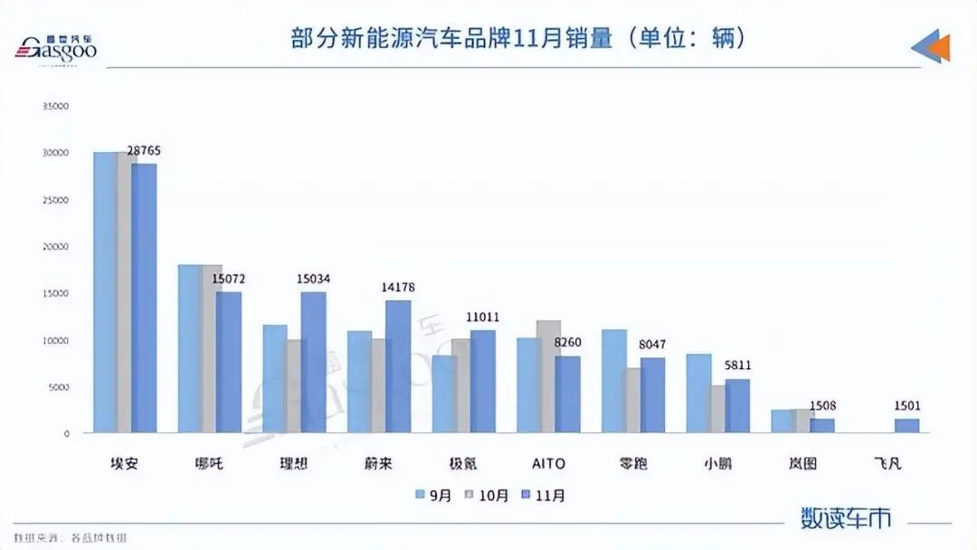 11月份一过,按照惯例,新能源汽车厂商们,又是争先恐后的发布自己11月份的业绩了,就像约定好的一样。