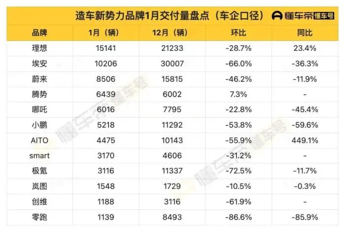 2月份一到,各大新能源车企,就纷纷交出了自己1月份的成绩单。