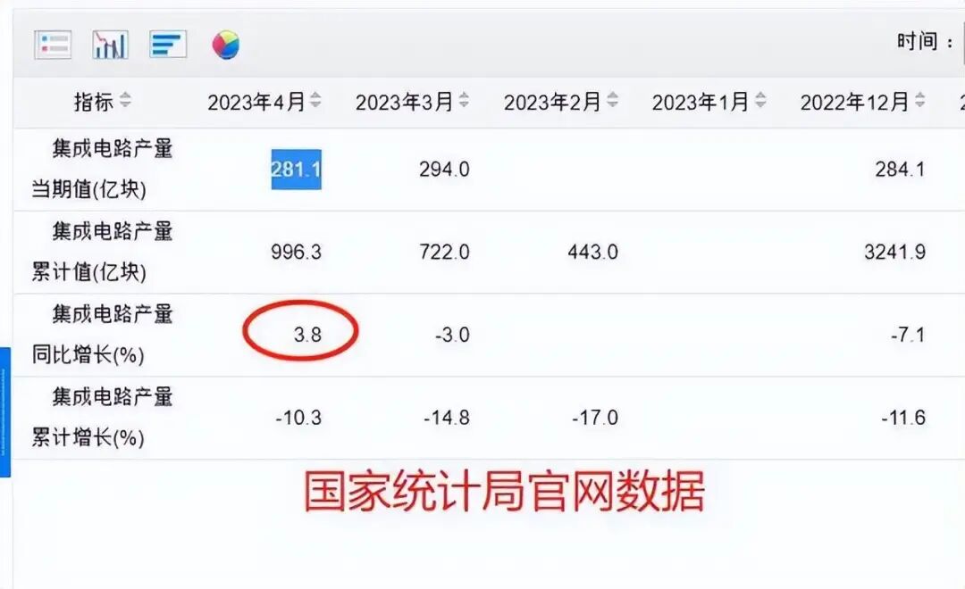 而从统计局的数据来看4月份,连续下滑15个月国产芯片产量在下滑的趋势也终于逆转了,统计局的数据显示,2023年4月份,国内芯片产量为281.1亿颗,同比增长3.8%。