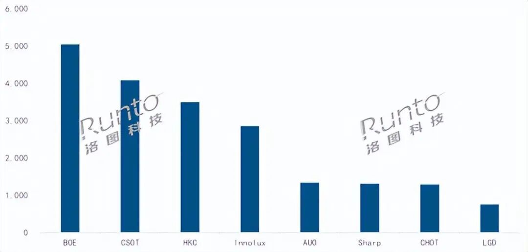 而从全球的出货量排名来看,前10名分别是BOE(京东方)、CSOT(TCL华星光电)、HKC(惠科)、Innolux(群创)、AUO(友达)、Sharp(夏普)、CHOT(彩虹光电)、LGD(LG显示公司)。