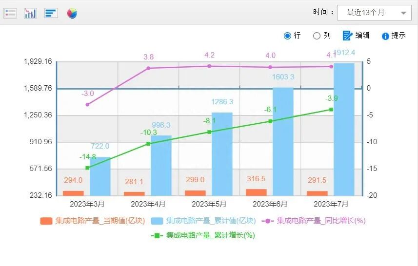 按照官方数据显示,2023年7月份,国内芯片产量增长4.1%至292亿片,而这已经是连续第四个月正增长了。