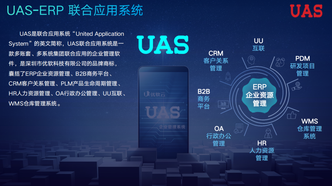 企业简介 深圳市优软科技有限公司成立于2007年,是由深圳市英唐智能控制股份有限公司(股票代码300131)控股的高新技术企业。 优软研制ERP管理软件已有十多年历史,专注服务于电子元器件分销代理及电子制造业的企业。公司拥有一支经验丰富、专业精干的技术团队,由研发技术专家、产品经理、 资深实施顾问等人员打造了“以经营管控为核心思想”的UAS联合应用系统。 以打造ERP+和MES+为基础应用,以自动化、可视化、智能化助力经营管理和生产现场的高效运作的企业信息协作平台。 公司倡导“以技术为本,以服务制胜”的经营理念和诚实稳健的经营作风,赢得客户广泛的信任和支持。 来源于企业