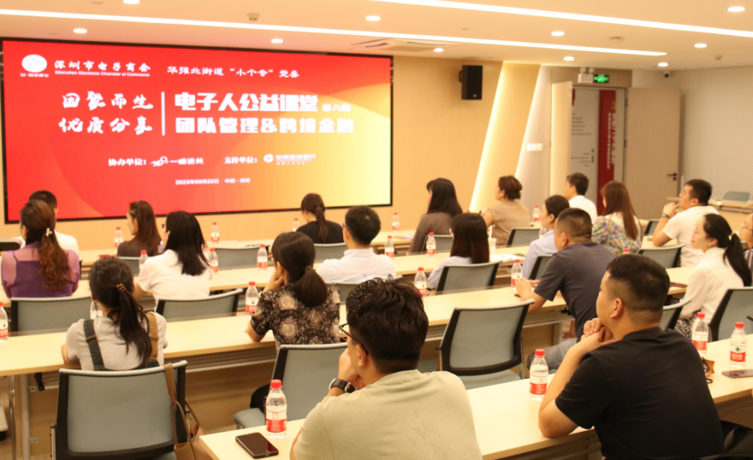 9月22日下午,电子商会主办的电子人公益课堂第六期邀请一咻通关总经理杨小平、建设银行上步支行国际业务部总经理徐思蓉分别就团队管理和跨境金融进行主题演讲。