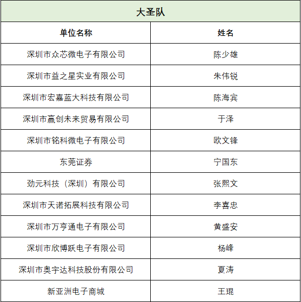 总决赛 电子商会篮球总决赛 冠军 掘金队 亚军 火箭队 季军 大圣队 3V3 电子商会篮球总决赛 亚军 大圣队 季军 掘金队 三分球大赛 电子商会篮球总决赛 冠军 宏远队队长陈志泓代队员李鹏程领取奖牌 亚军 陈志伟 季军 李喜忠 黄盛安 技巧大赛 电子商会篮球总决赛 冠军 黄盛安 亚军 池坚 季军 苏奕翰 凤岗天安数码城国际电子交易中心负责人刘大新为个人技巧赛冠亚季军颁发奖牌。 亲子趣味赛 电子商会篮球总决赛 最佳总队长 电子商会篮球总决赛 最佳总队长 马立潮 最佳队长/领队 电子商会篮球总决赛 最佳队长 最佳领队
