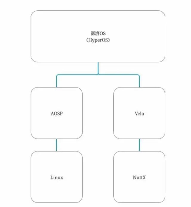 如上图所示,linux下诞生了AOSP。而NuttX下诞生了Vela,然后小米将Vela+AOSP整合,再研发出了澎湃OS。澎湃OS没有脱离安卓开源项目AOSP,也没有脱离Vela。
