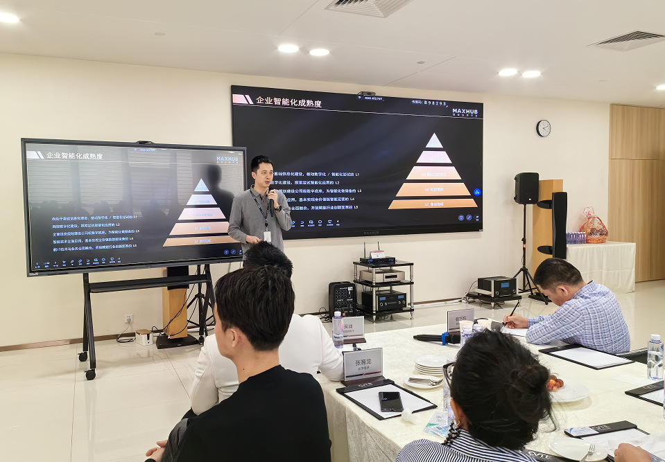 视源股份黑带专家、供应链中心总监冯勇波,MAXHUB深圳销售经理李方舟分别作《CVTE供应链管理分享》、《MAXHUB智能制造解决方案》,介绍了供应链模式、上下游协同创新、智能制造解决方案、应用场景及相关板块情况。