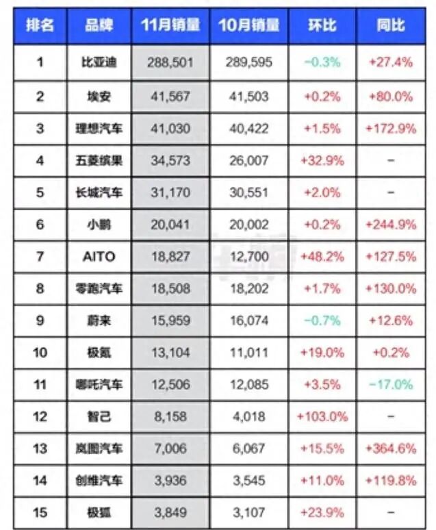 11月份一过,各大新能源车企们纷纷发布了11月份的成绩单。