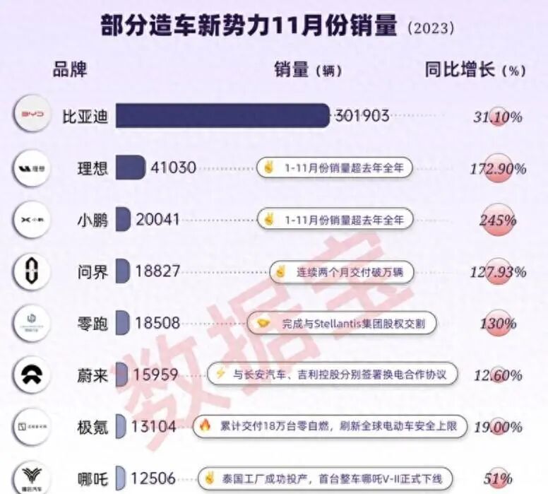 近日,各大新能源车企们,特别是造车新势力们,纷纷发布了11月份的战绩。从整体销量来看,这次绝大多数的车企,环比、同比都在增长,形势一片大好。