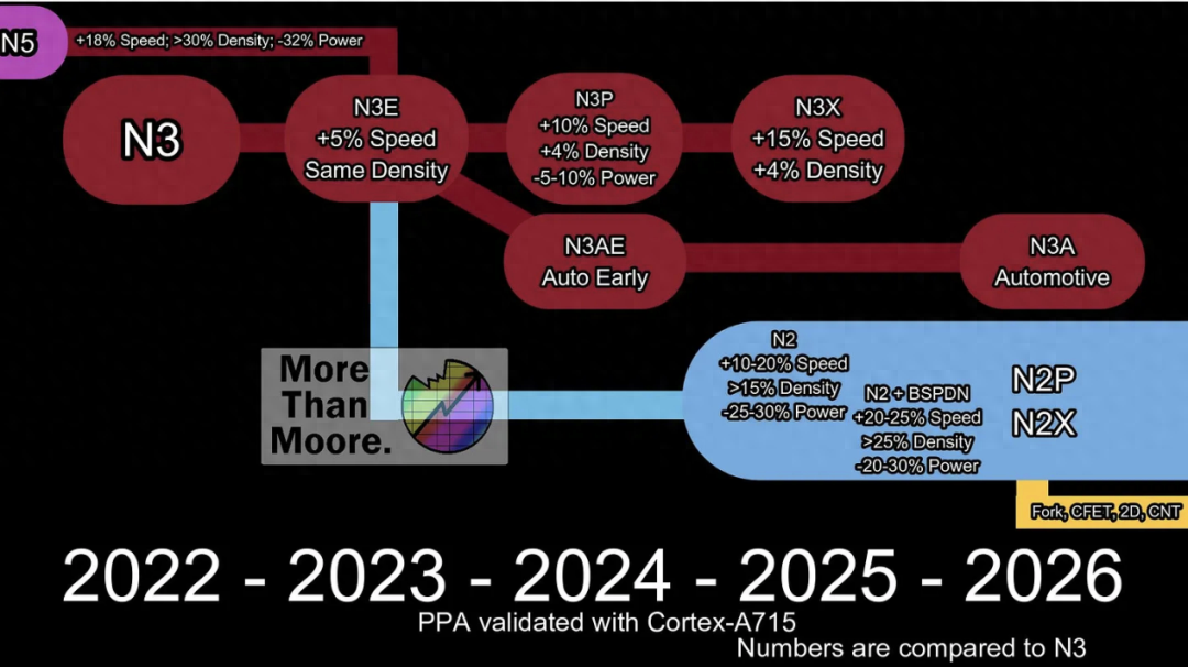 而2018年到2023年,真的就只有5年时间,而从7nm,到现在的3nm,中间只隔了5nm这一代,所以相差也就是2代左右。