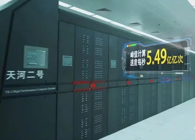 后来在2013年,中国推出了天河2号,性能是每秒5.49亿亿次(54.9PFLOPS),在2013年时是全球最快的超级计算机。并且从2013年到2016年,连续拿了6次TOP500全球第一。
