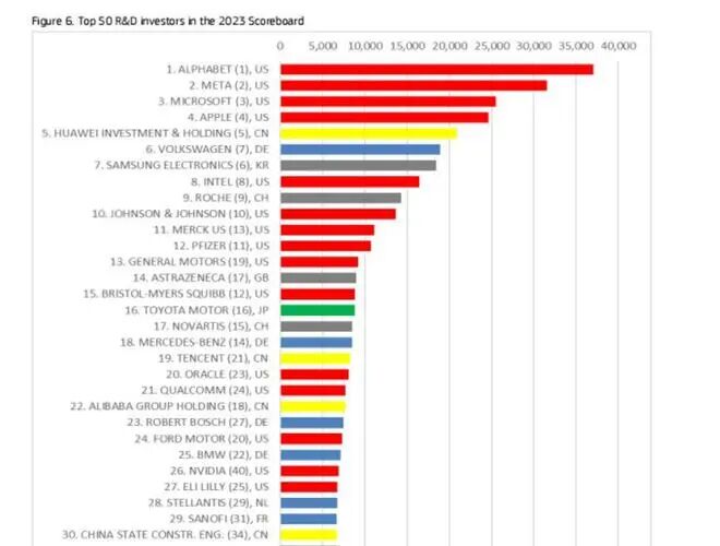 全球研发投入排行:谷歌第1,华为跌至第5,低于苹果