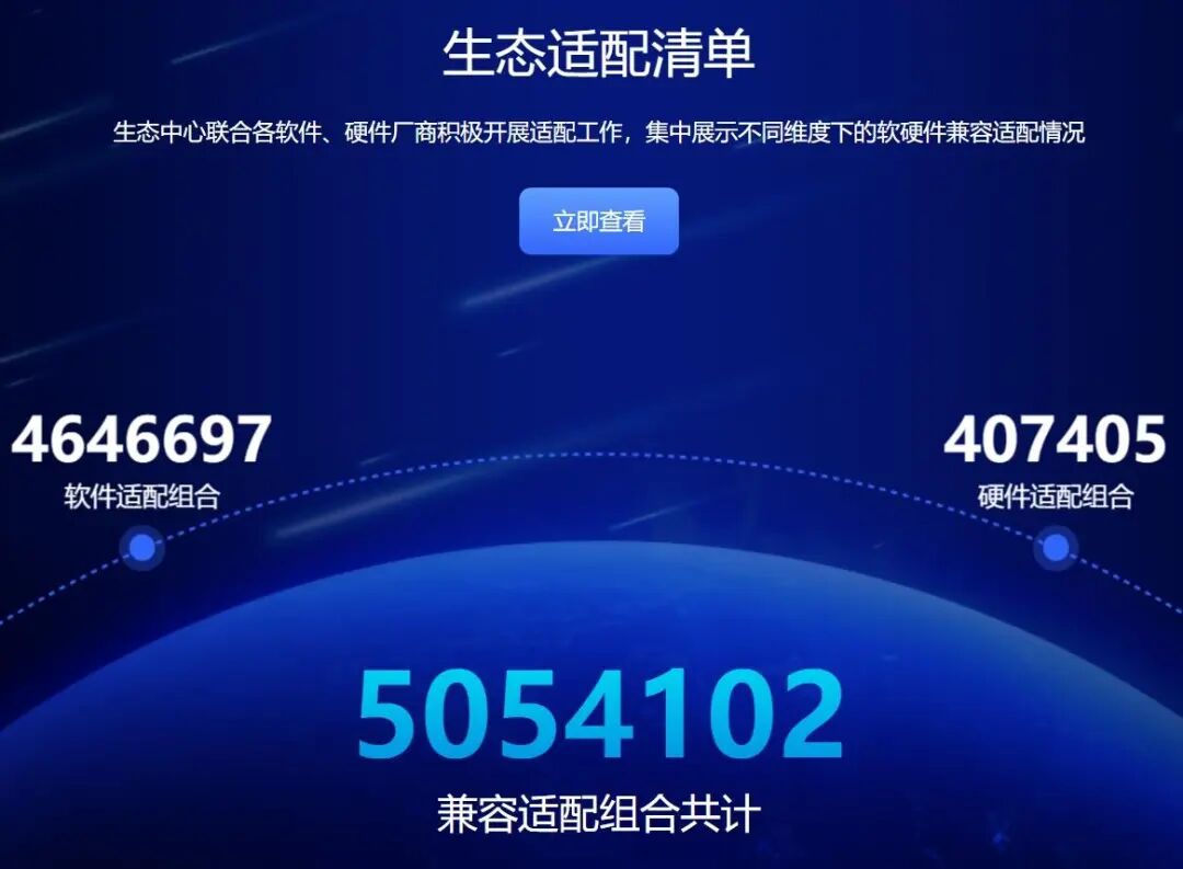 先说生态数量,从官网可以查到,目前统信UOS的生态数量是5054102,是所有国产操作系统中最多的,其中兼容的软件数量是4646697个,兼容的硬件是407405种。