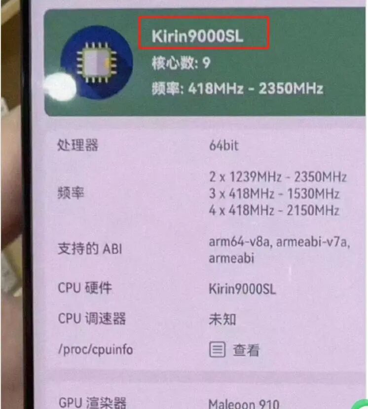 从曝光的信息来看,麒麟9000SL,GPU还是Maleoon 910,没有变化。但是CPU从8核变成了6核,少了一个中核 + 一个小核。