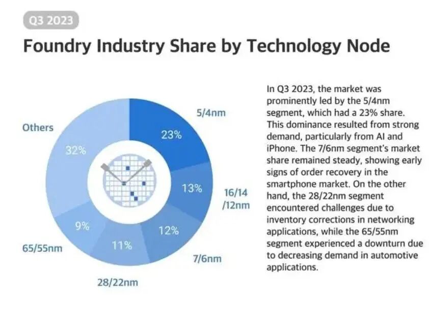 另外,还给大家看一个数据,那就是3季度全球芯片代工市场的工艺分布情况。