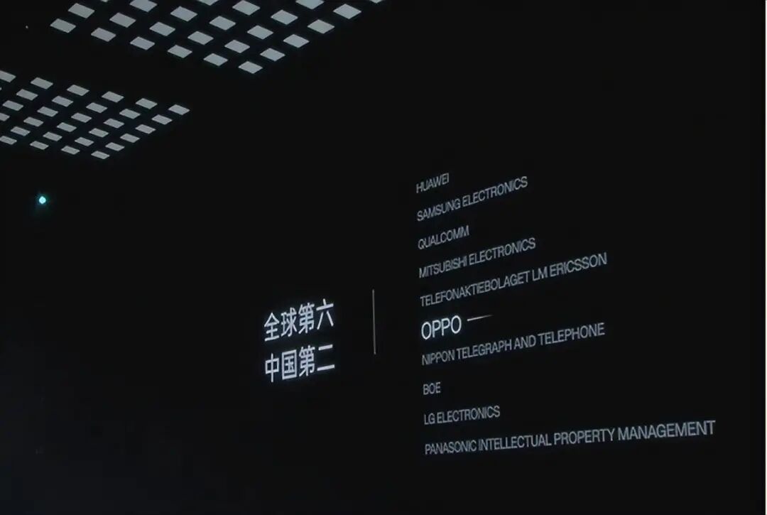 上图是OPPO在发布会上公布的排名,前10家公司,分别是华为(中国)、三星(韩国)、高通(美国)、三菱(日本)、爱立信(欧洲)、OPPO(中国)、日本电信电话公社(日本)、京东方(中国)、LG(韩国)、松下(日本)。