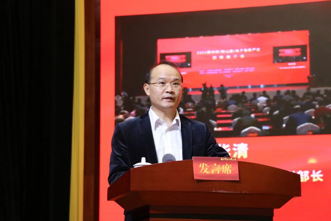 在粤桂东西部协作战略大背景下,为进一步共同推动两地电子信息产业融合、促进两地联动发展、互利共赢。于12月17日下午,由广西壮族自治区党委统战部、中共贺州市委员会、贺州市人民政府、深圳市电子商会主办,中共贺州市委统战部、贺州市工商业联合会、中共钟山县委员会、钟山县人民政府承办的2021贺州市(钟山县)电子信息产业招商推介会在广西贺州钟山县顺利举办。广西壮族自治区党委统战部副部长冯华清,统战部五处处长唐臻文;贺州市委常委、组织部部长邓婉玲,市人民政府副市长罗剑,市人民政府副秘书长陈仕府,市委统战部副部长、市工商联党组书记徐国光;钟山县委书记黄卫东、县人民政府县长程钊等领导出席。电子商会会长、华强集团总裁李曙成等深圳企业家应邀出席活动。