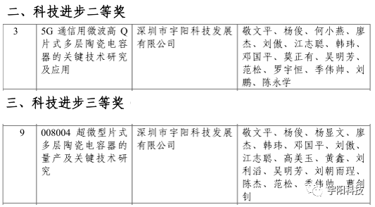 12月21日,广东省电子信息行业2021年度科学技术奖名单公布,宇阳科技5G通信用微波高Q片式多层陶瓷电容器的关键技术研究项目和“008004超微型片式多层陶瓷电容器的量产及关键技术研究”项目分别荣获科技进步二等奖、三等奖。此外,两个项目共获得专利8项,其中发明5项,实用新型3项;受理中专利7项,其中发明专利3项,实用新型专利4项。获奖项目技术成功在生产中得到推广应用,大力提升了MLCC产业的技术水平,得到行业客户的高度认可和支持。