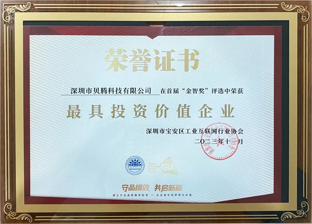 喜讯!贝腾科技在首届“金智奖”先进企业评选中荣获“最具投资价值企业”