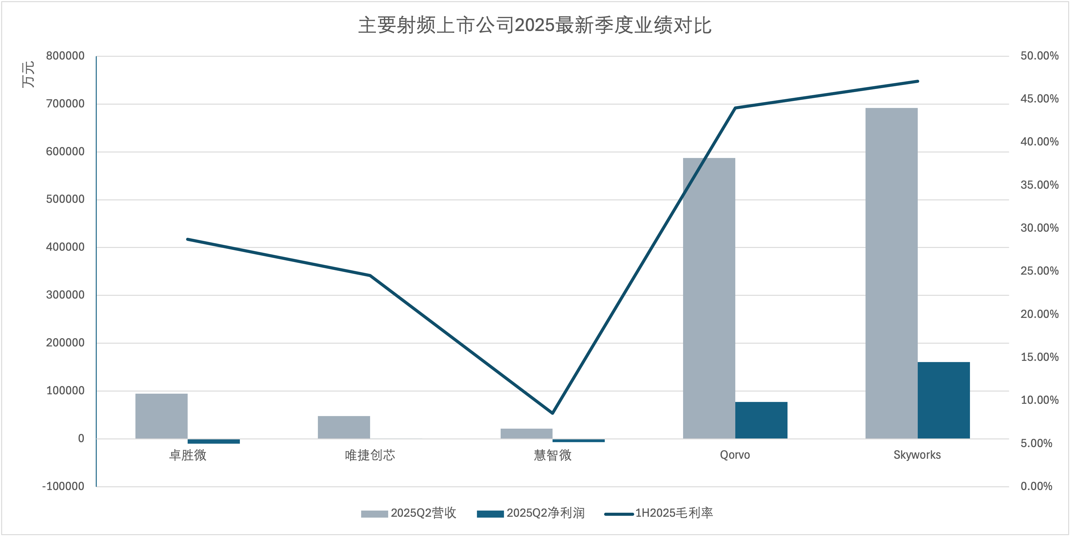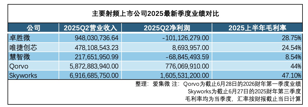 最新财务数据显示,全球射频前端市场正经历明显分化。海外巨头Qorvo和Skyworks继续保持强劲的盈利能力和较高的毛利率水平。