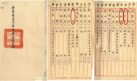 1942年至1943年,杨振宁担任昆华中学物理教员,并与黄昆、张守廉共同被称为该校“三剑客”,上图为昆华中学员工名册