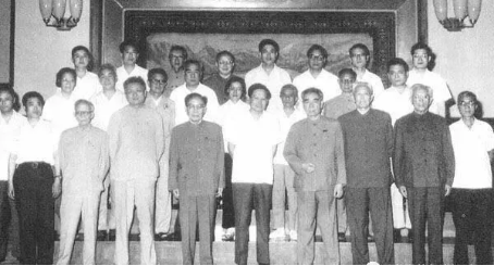 20世纪70年代,周恩来总理接见杨振宁时合影(前排右五为杨振宁,后排左三为黄昆)