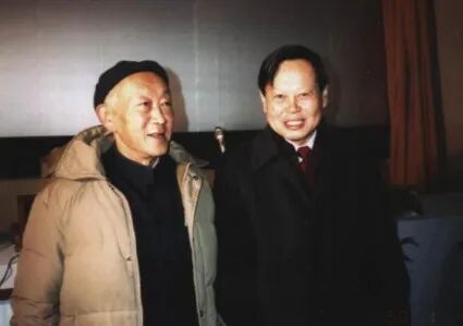 1989年,在黄昆先生七十寿辰学术报告会上,杨振宁与黄昆合影