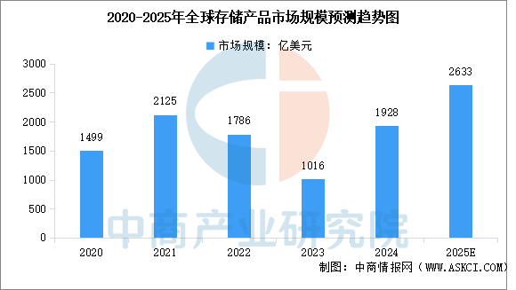 存储产品是指为数据存储及临时或永久访问而设计的硬件组件。根据核心晶圆类型、性能特征及应用场景,存储产品可以系统地分为嵌入式存储、固态硬盘(SSD)、内存模块、LPDDR及可移动存储等多种形态。中商产业研究院发布的《2025-2030年中国存储行业市场发展现状及潜力分析研究报告》显示,在数字经济各领域对存储技术需求不断扩大的推动下,全球存储市场持续增长,2024年达到1928亿美元。中商产业研究院分析师预测,2025年全球存储产品市场规模将达到2633亿美元。