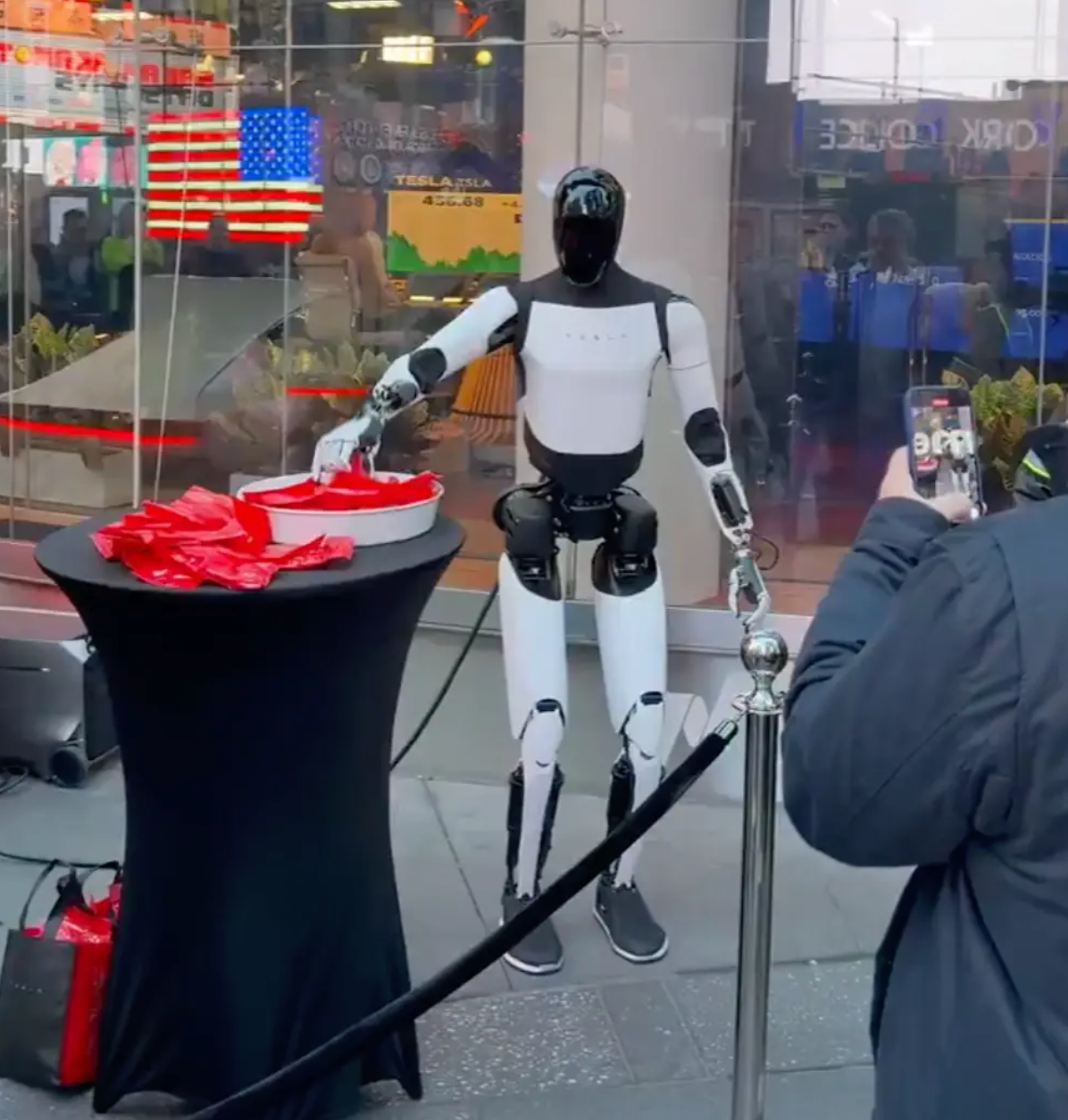 在特斯拉发布的视频中,Optimus可以走路、叠衣服、在《创:战神》首映式上表演功夫动作,以及在时代广场派发糖果。