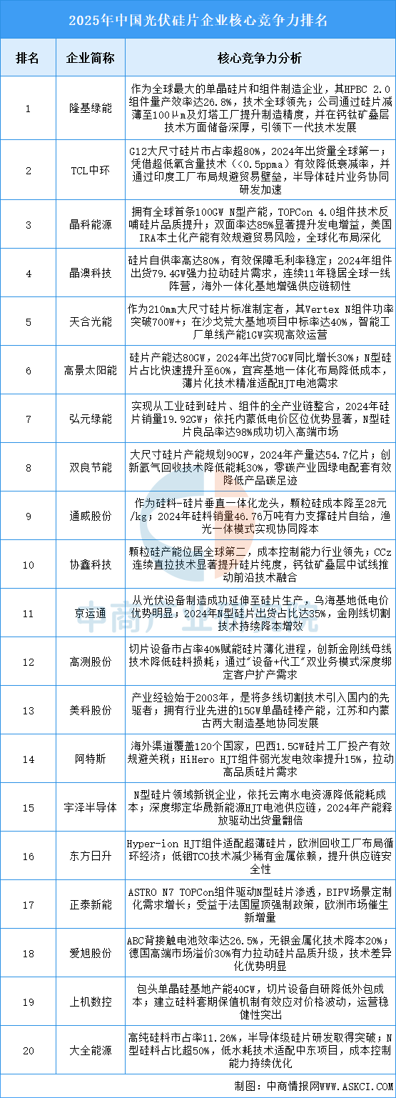 当前行业在N型技术迭代与薄片化降本双轮驱动下,头部企业凭借全产业链整合、海外产能布局与技术差异化构筑护城河,未来竞争焦点将集中于半导体级工艺突破、低碳制造认证及钙钛矿叠层技术商业化进度,具备技术前瞻性与全球化运营能力的企业将在行业整合中持续领先。