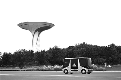 一款自动驾驶观光巴士行驶在合肥市骆岗公园内。 新华社记者 黄博涵 摄