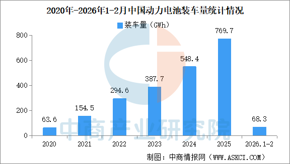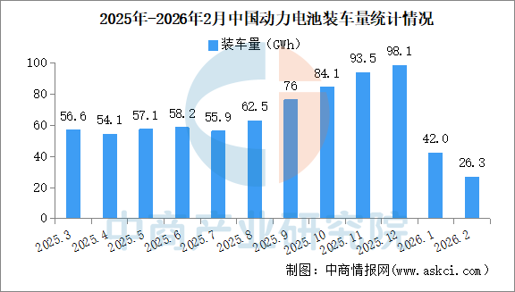 2026年2月中国动力电池装机量情况:磷酸铁锂电池装车量同比下降27.5%(图)