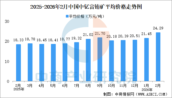中钇富铕矿2月份均价为24.29万元/吨,环比上涨13.2%。