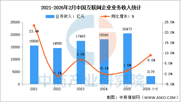 中商情报网讯:1-2月份,互联网业务收入保持增长势头,利润总额增速加快,研发经费投入保持较快增长,部分地区增势良好。互联网业务收入保持增长势头。1-2月份,我国规模以上互联网和相关服务企业完成互联网业务收入3179亿元,同比增长9%。