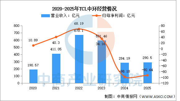 2025年290.5亿元,同比增长2.22%;归母净利润亏损92.64亿元。2025年主营产品包括光伏硅片、光伏组件、半导体材料,营收分别占整体的42.13%、32.10%、19.64%。