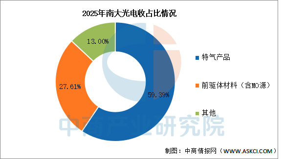2025年实现营业收入25.85亿元,同比增长9.91%;实现归母净利润3.2亿元,同比增长18.08%。2025年主营产品包括特气产品、前驱体材料(含MO源),营收分别占整体的59.39%、27.61%。