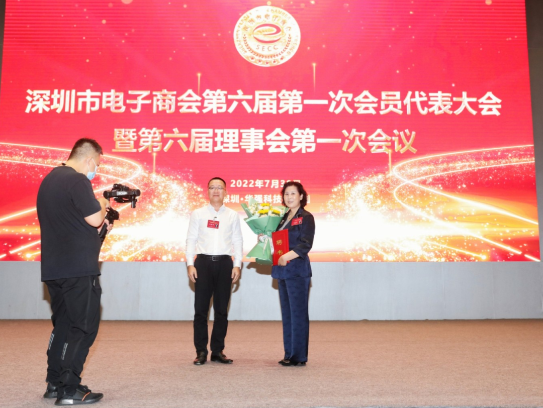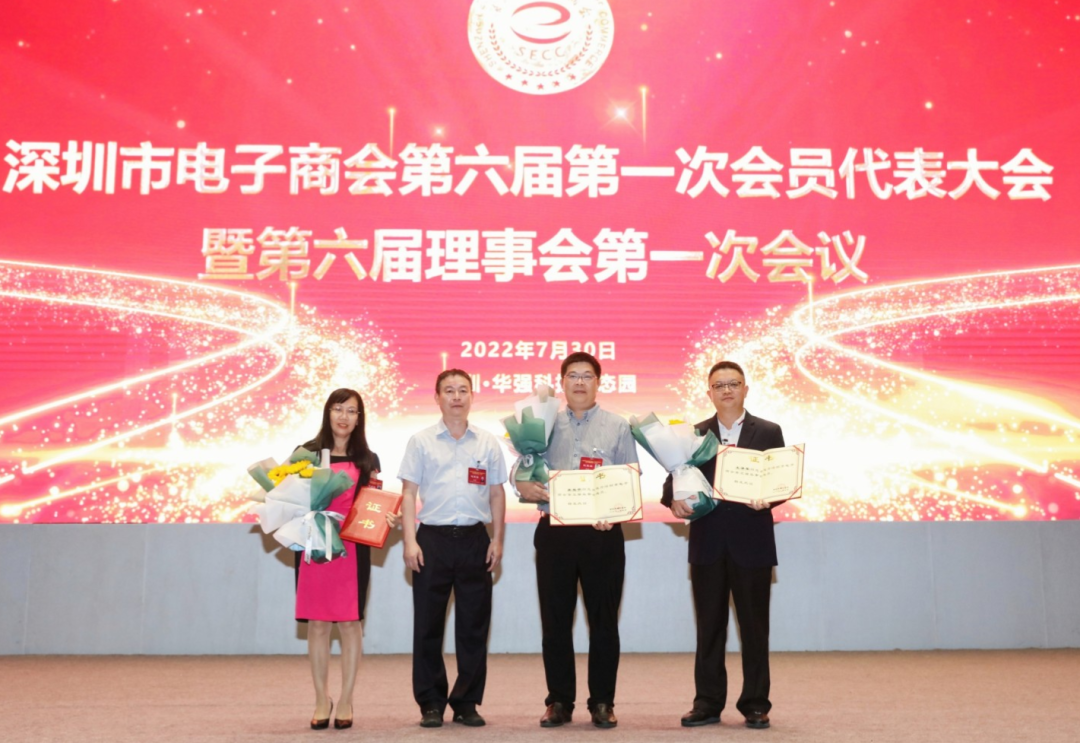 经过现场投票,李曙成再次高票当选深圳市电子商会第六届理事会会长,王泽军当选电子商会第五届监事会监事长。深圳市社会组织管理局白凌副局长代表政府出席会议并向李曙成颁发电子商会第六届理事会会长证书(图1),第四届监事长施宁伟向王泽军颁发了电子商会第五届监事会监事长证书,向柳守雯、吴益宇颁发监事证书(图2)。