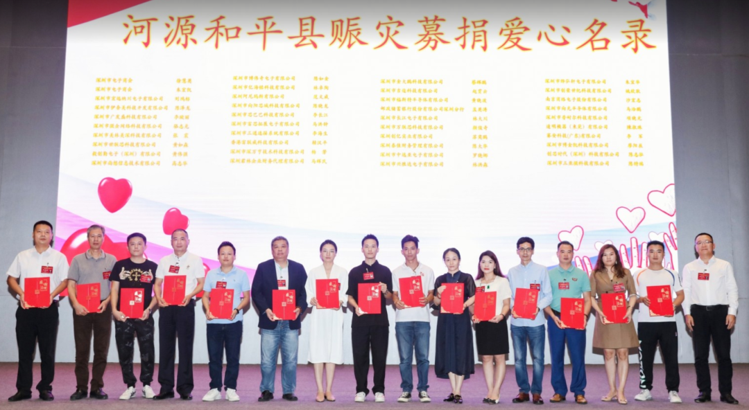 李曙成会长为“河源和平县赈灾募捐”爱心企业颁发感谢信