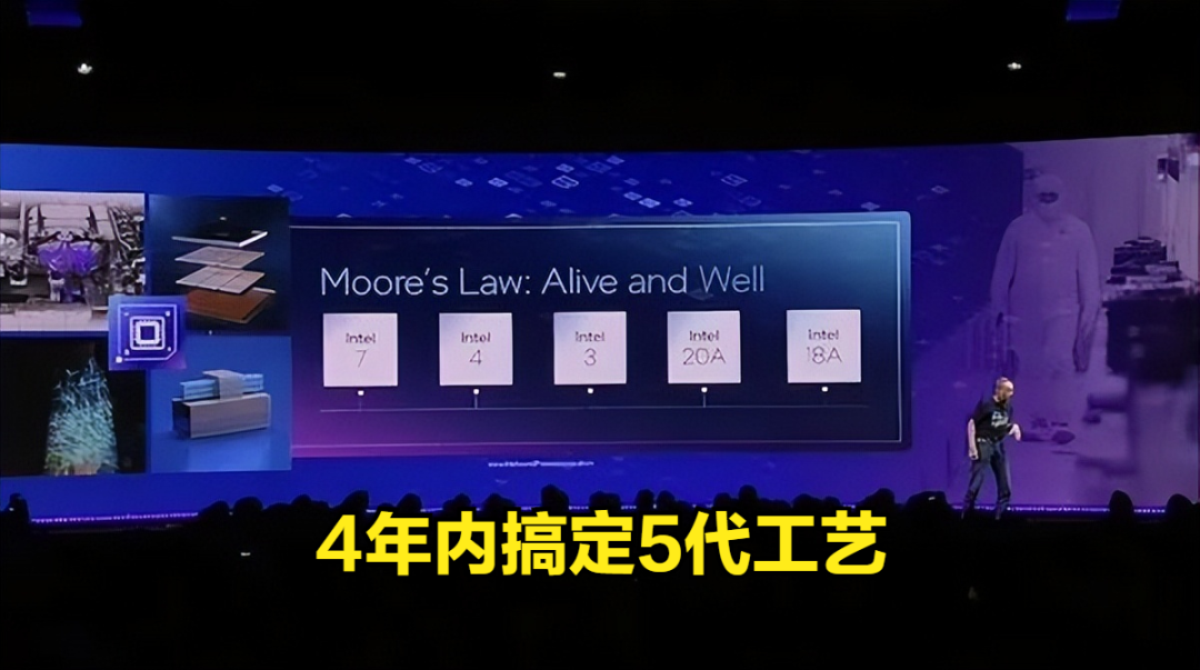 英特尔为了佐证自己的能力能够4年内搞定5代工艺,还表示称,今年内英特尔要实现1.8nm芯片的流片。