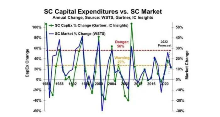 于是众多的媒体和机构就表示,整个晶圆市场,接下来可能会面临产能过剩的风险,分析机构Future Horizons甚至认为明年芯片产业至少下行25%。