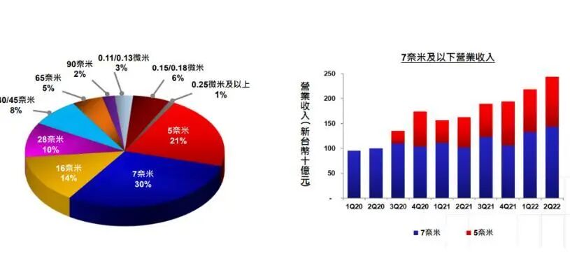 如上图所示,这是台积电2季度各制程的营收数据,其先进制程(7nm及更先进制程)营收总占比达到51%,较前季继续扩大(50%),16nm和28nm营收占比分别为14%和10%。