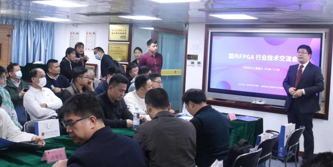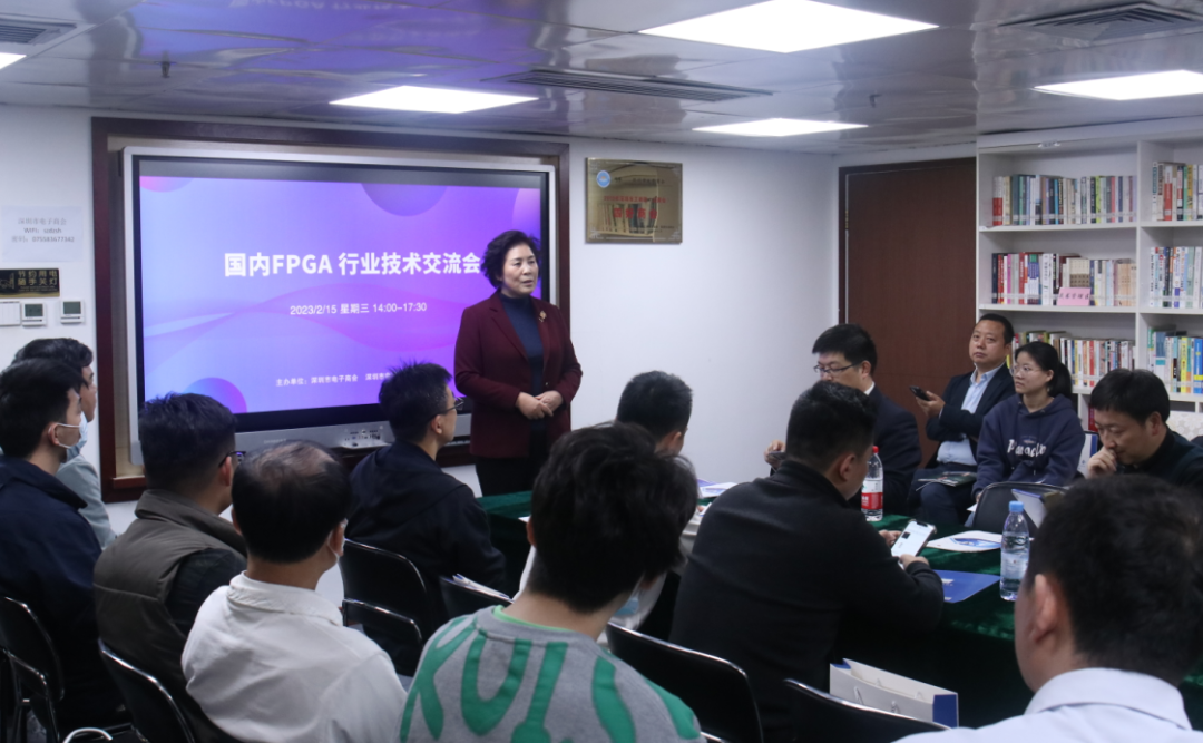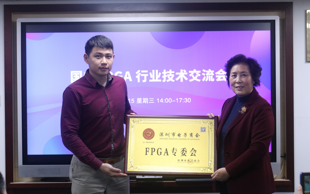 2月15日,深圳市电子商会、深圳市电子商会FPGA专委会举办国内FPGA行业技术交流会,30多家FPGA业内企业负责人参加。电子商会常务副会长(驻会)兼秘书长徐慧英出席活动,并为FPGA专委会主任马立潮授专委会牌。电子商会专精特新委员会秘书长潘安平、电子商会智能制造专委会主任吴益宇应邀参加活动。吴益宇主任主持会议。
