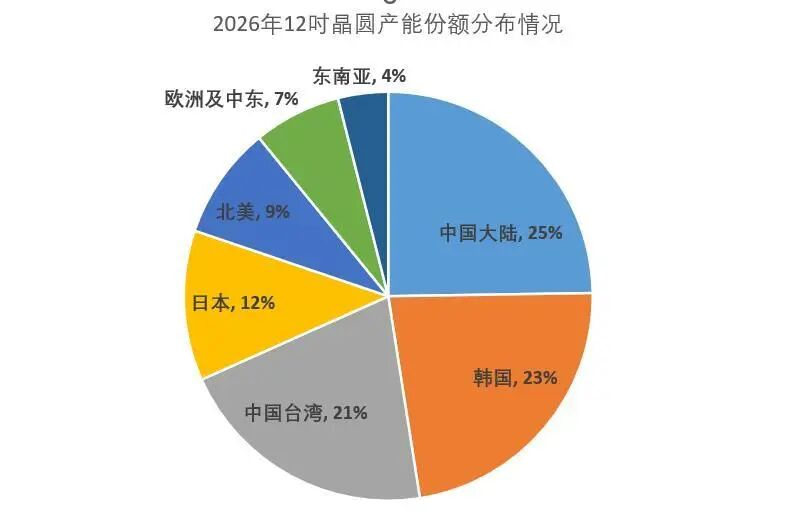 机构根据当前各大晶圆厂建设的12寸生产线预测,到2025年时,中国大陆在12寸晶圆的产能上,其份额将达到25%,达到每月 240 万片晶圆,排名全第一。然后才是韩国、中国台湾、日本、北美及中东等地。