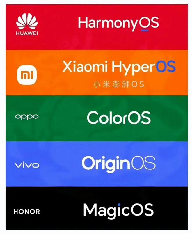 事实上,目前国产手机厂商们,都有自己的系统,小米以前叫MIUI,现在叫澎湃OS,华为叫鸿蒙OS、VIVO叫OriginOS,OPPO叫ColorOS,荣耀叫MagicOS。
