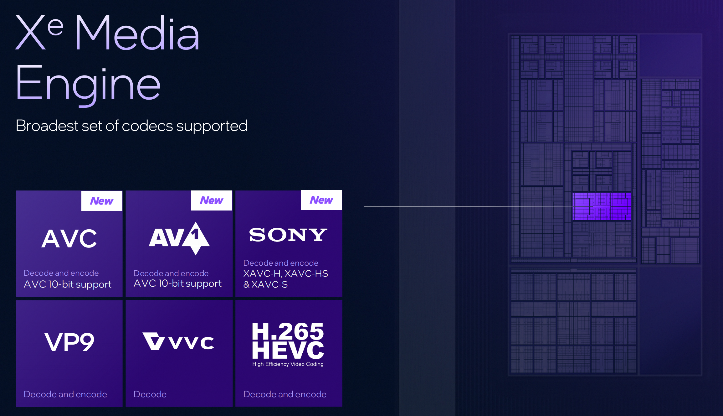 在多媒体显示方面,XeMedia Engine支持广泛的编解码,包括最新的AVC、AC1、XAVC-H等,据了解,该项技术的创新主要由中国团队完成。