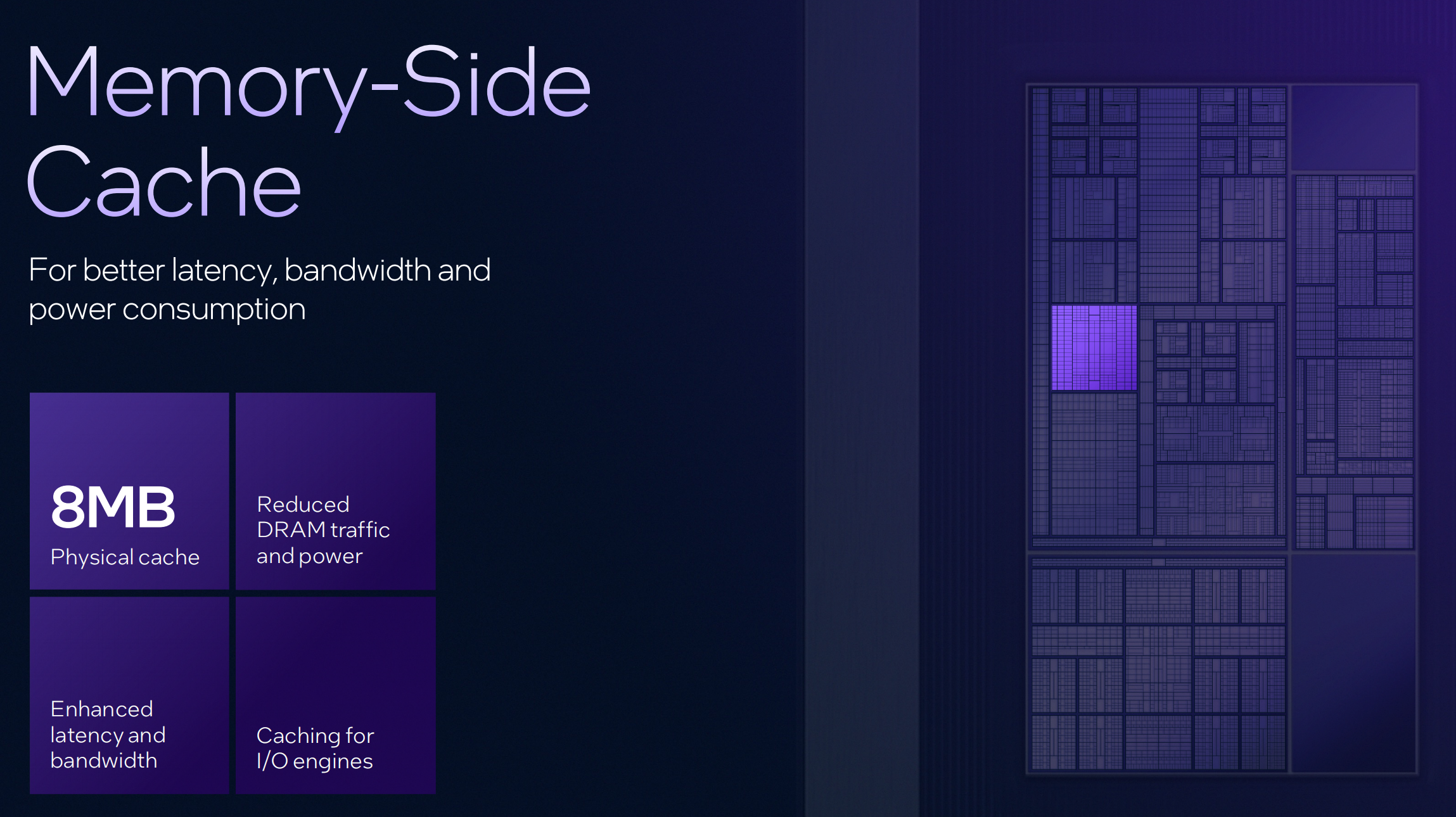 简要而言,内存侧缓存技术就是把数据缓存放到离处理器更近的地方,减少DRAM拥堵和功耗,使数据被抓取成功的概率更高,传输距离更短,缩短延迟提升带宽。这项技术也是在目前Windows PC领域英特尔的独家技术。