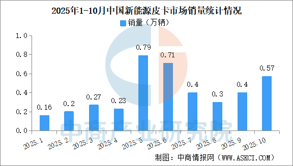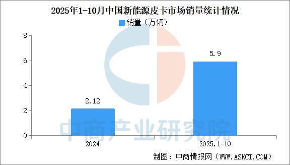 中商情报网讯:2025年10月新能源皮卡0.57万辆,同比增长138%,环比增长31%;1-10月累计新能源皮卡5.9万辆,增长382%,形成了更强于皮卡总体增速的较好走势。