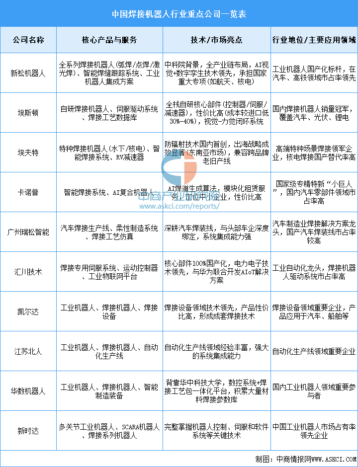 5.焊接机器人行业重点公司