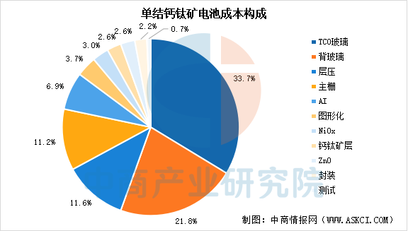 单结钙钛矿电池的成本构成中,材料成本占比最大,其中TCO玻璃(透明导电氧化物玻璃)是占比最高的单项材料,成本占比可达33.7%。TCO玻璃是在平板玻璃表面通过物理或化学镀膜方法均匀镀上一层透明导电氧化物薄膜的材料,TCO玻璃因其高透光性、导电性以及优异的光散射能力,成为钙钛矿等薄膜太阳能电池不可替代的核心材料之一。